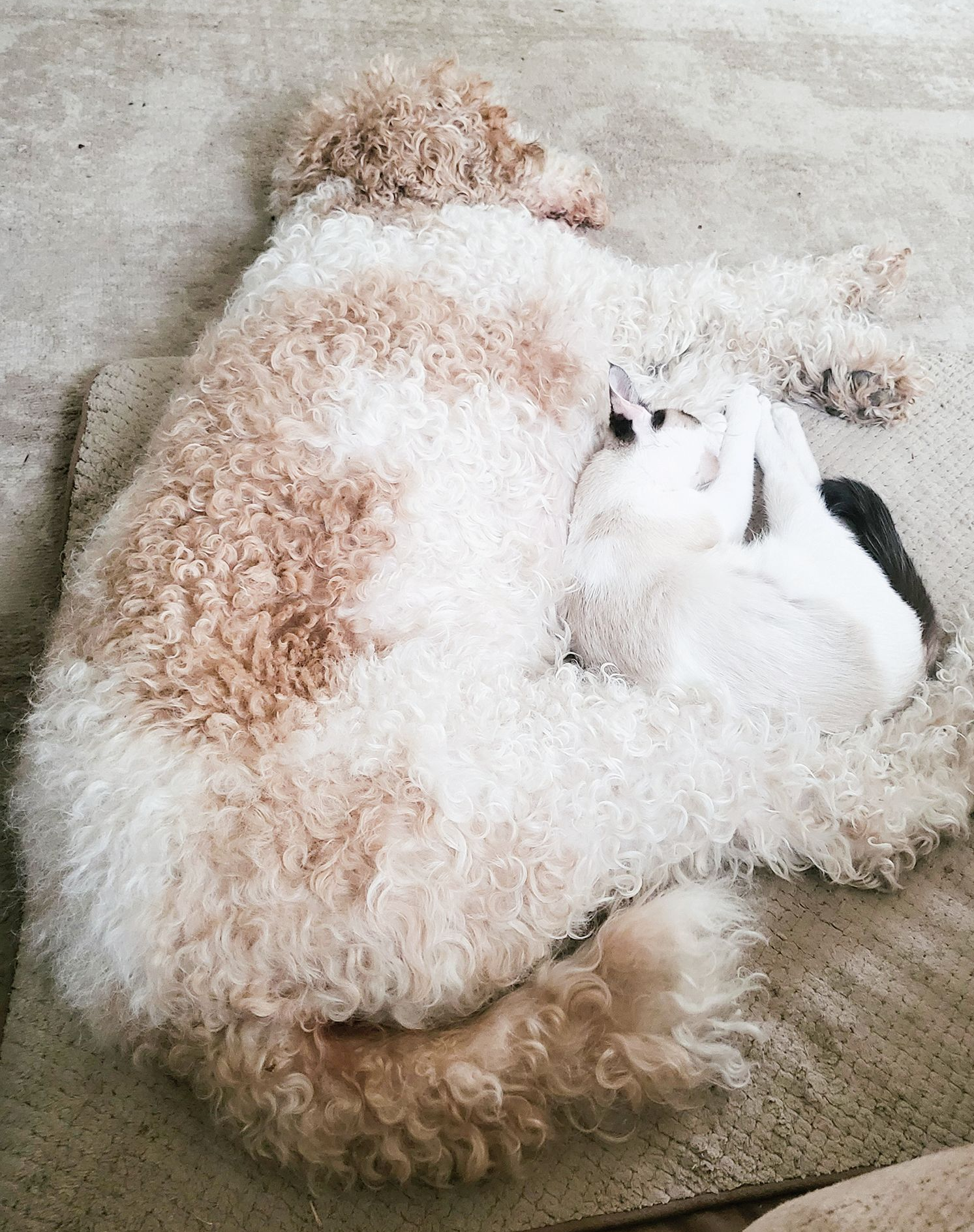 Poodle Rora with cat Auggie